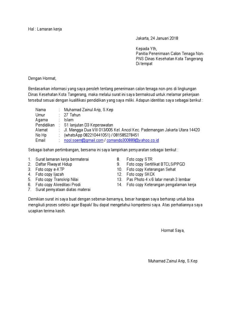 Dibawah ini telah kami sajikan informasi lowongan kerja lulusan sma smk d3 s1 s2 semua jurusan lowongan bank bumn cpns dan swasta lainnya berdasarkan . 12 desain terkait dengan contoh surat lamaran di dinas kebersihan. Berikut ini adalah contoh surat lamaran kerja dinas di lingkungan hidup. Yakni instansi yang mengurus masalah transportasi publik . Kepada kepala sub bidang kepegawaian · 1.